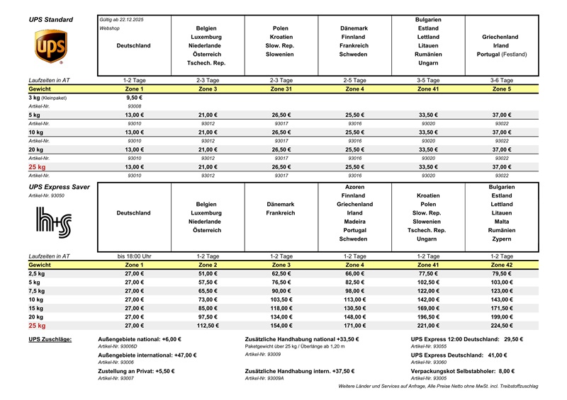 ab 22.12.2025 gilt die neue UPS Preisliste...