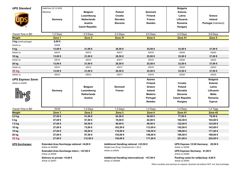 h+s will send from 22.12.2025 with new UPS pricelist
